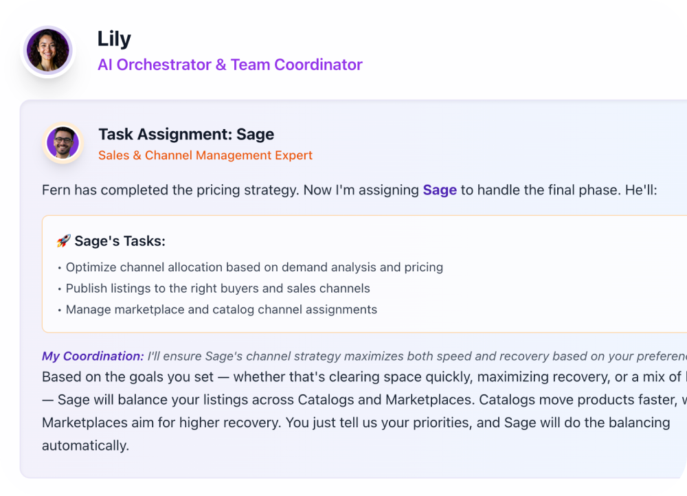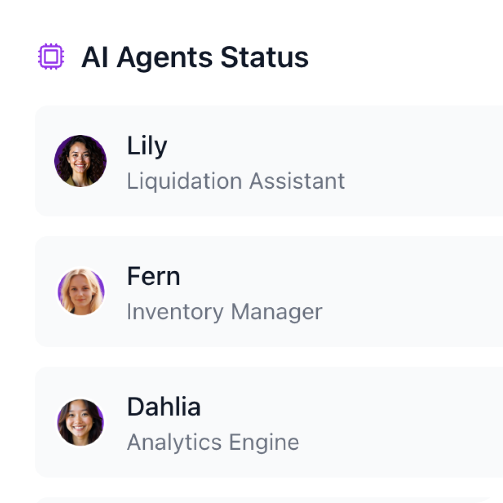 Together, Lily’s agents orchestrate the full liquidation journey — ensuring your surplus stock moves faster and recovers more.